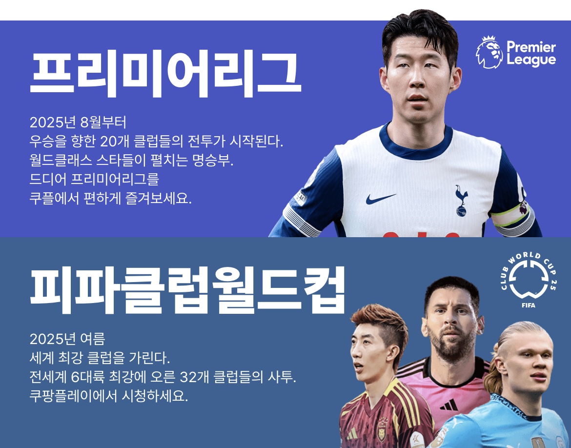 해외 축구 마니아라면 필수! 쿠팡 스포츠패스를 통해 아래 모든 리그를 고화질로 감상할 수 있습니다.